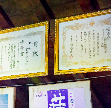 また2階には、田苑の歩みがしのばれる製品や広告、数々の受賞歴を語る賞状を展示するとともに、